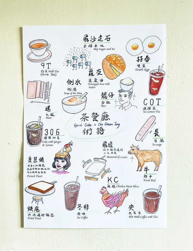 At the back is a poster with the special codes innovated by waiters in the cafe. All these elements contribute to the formation of local communities and now become collective memories of the Hong Kongers.
